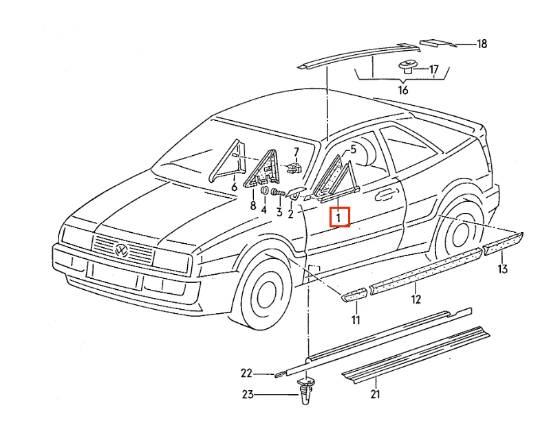 Cache placé à l’avant des portières sur Volkswagen Corrado.