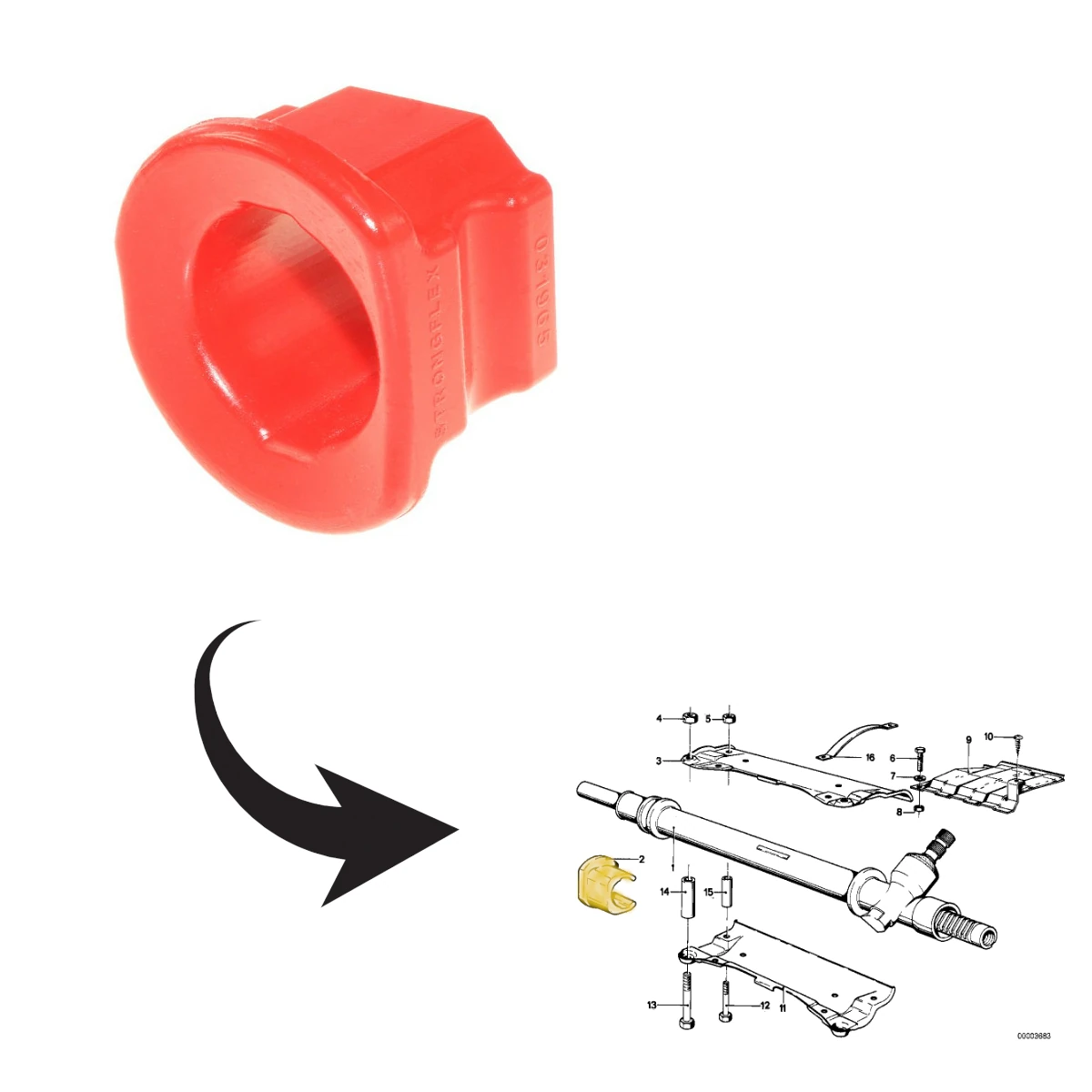 Silentbloc en polyuréthane pour la crémaillère de direction de votre Bmw Série 3 type E21.